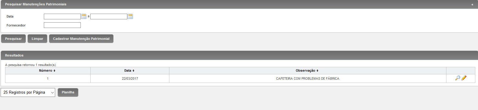 Pesquisar: preencher um ou vários dos campos disponíveis na tela inicial que servirão como filtros, e >Pesquisar.