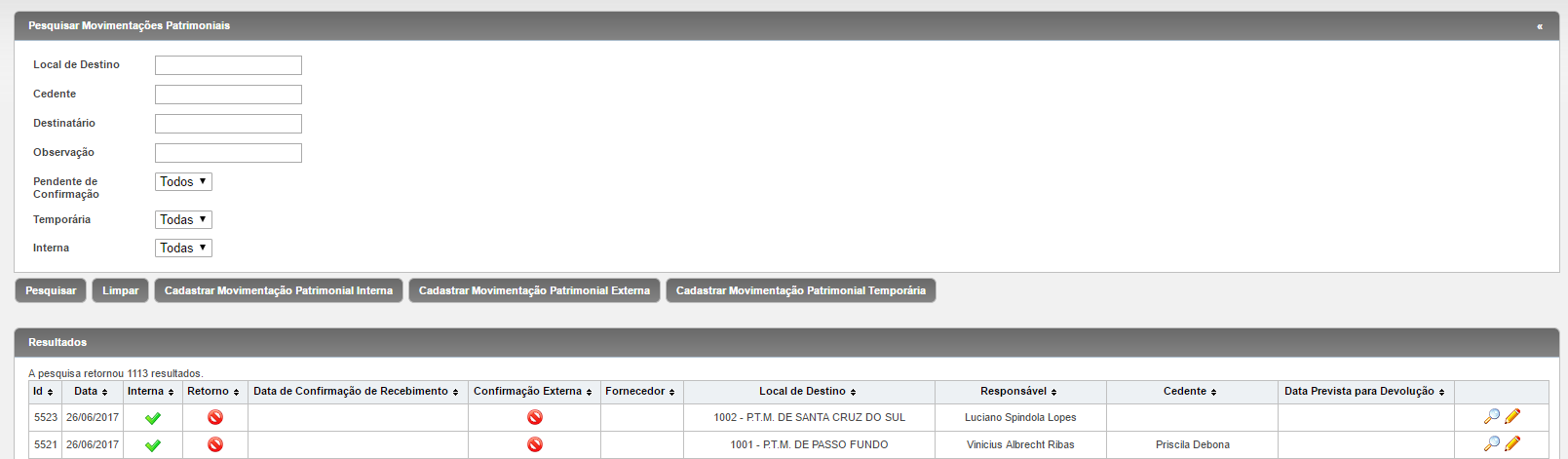 Para acessar: Materiais >> Patrimônio >> Movimentações Patrimoniais.