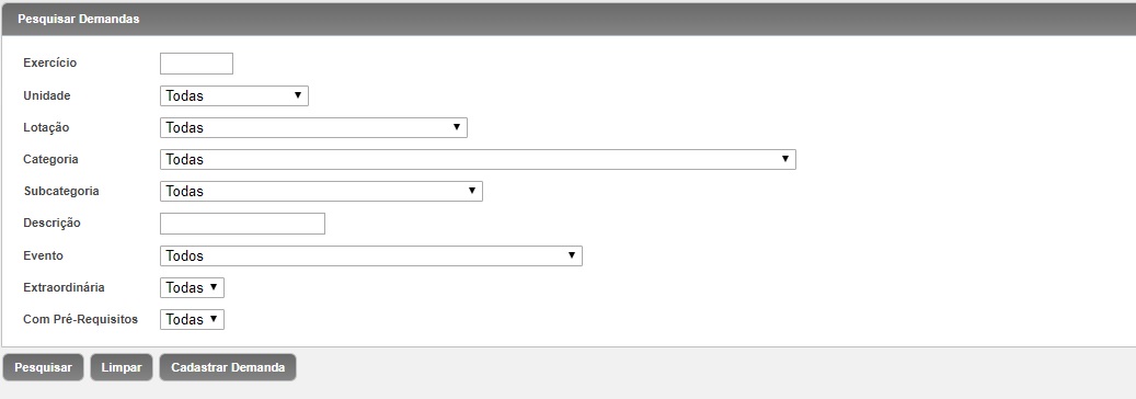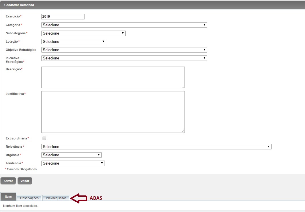- Extraordinária: ativar o campo caso se trate de demanda relativa ao exercício corrente e não inclusa em seu planejamento (ver definição)