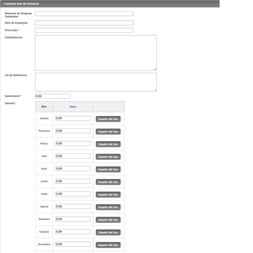 - Quantidade: informar o número de itens que se pretende adquirir ou contratar;