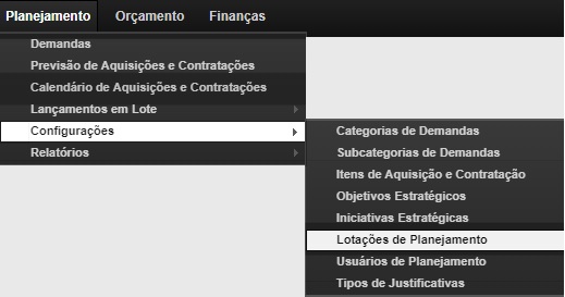 Para acessar: Planejamento >> Configurações >> Lotações de Planejamento