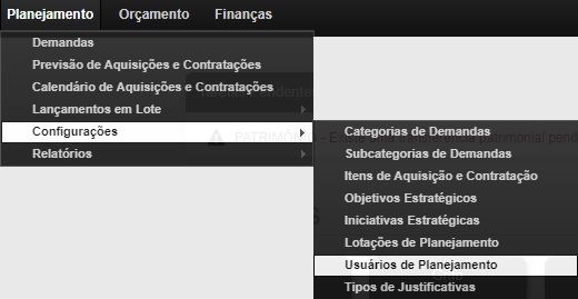 Para acessar: Planejamento >> Configurações >> Usuário