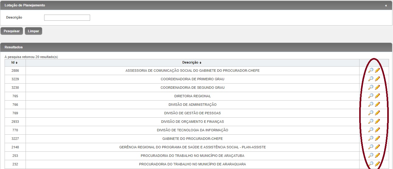 Quem edita: não é possível a edição vez que o rol de segmentos administrativos e PTM's disponíveis no sistema foi extraído do sistema de gerenciamento de pessoas - Mentorh